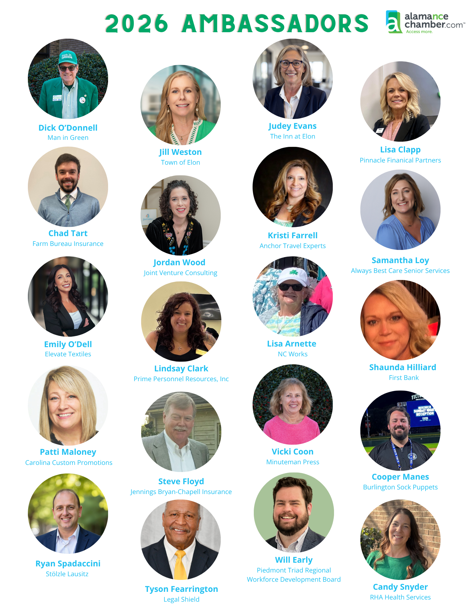 The Alamance Chamber is pleased to introduce our 2026 Ambassador Council.